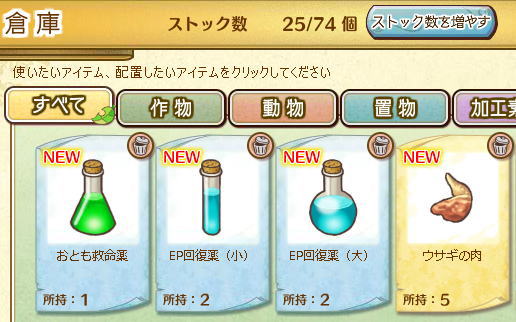 xx回復のようなアイテムは「倉庫の在庫としてカウントされないようになった」そうです。